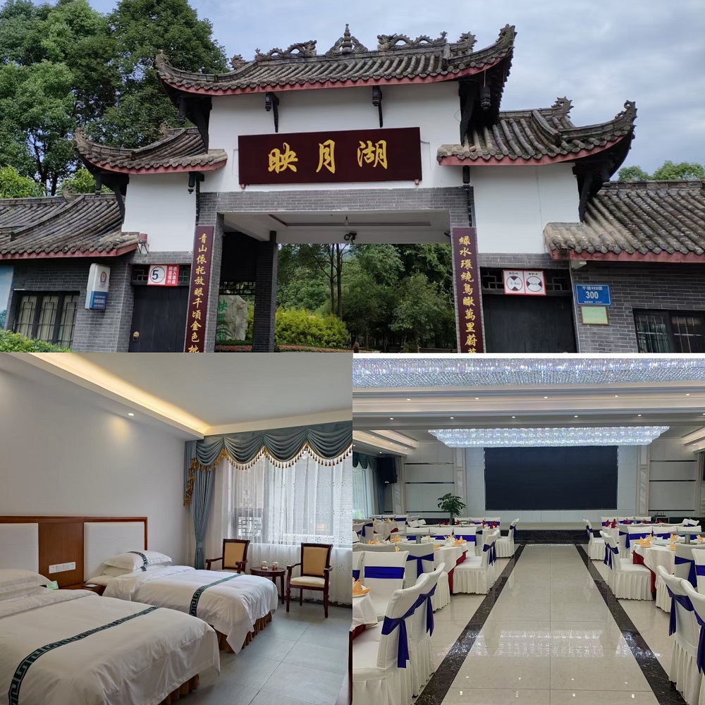 映月湖五星級鄉(xiāng)村酒店(暨中國西部枇杷博覽園)地處成都市天府新區(qū)東山大道三段(永興鎮(zhèn)),距成都市區(qū)30余公里。該酒店是以傳統(tǒng)文化為主題,是集婚宴、壽宴、會議、休閑、拓展、旅游為一體。是成都為數(shù)不多的五星級鄉(xiāng)村酒店。酒店為川西民居式建筑,古樸典雅,與蒼翠的青山及清澈的湖水珠聯(lián)璧合,四季花開、五彩斑斕,使人感到猶如置身世外仙境。店餐廳寬敞明亮,可供1000余人同時用餐,并備有風(fēng)格各異的豪華包間??腿丝稍谇逍?、優(yōu)雅的環(huán)境中享用美味佳肴;酒店各種規(guī)格的茶坊、機麻包間環(huán)境優(yōu)美;客房有118套房間,環(huán)境舒適溫馨,使客人體驗到家的感覺;大中小會議室9個,音響、話筒、投影等現(xiàn)代化設(shè)備完善;湖畔草坪是您舉行婚禮和拓展的絕佳選擇,高空、水上、地面、CS等拓展訓(xùn)練場地環(huán)境絕佳,是您開展拓展訓(xùn)練活動的理想場所!